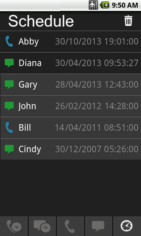 Schedule multi fake calls/sms (text messages) ;